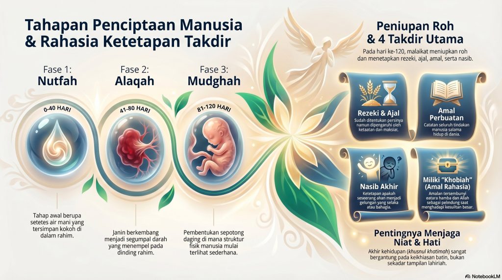 KabarMasjid.id, Surabaya – Kehidupan manusia adalah sebuah perjalanan panjang yang dimulai jauh sebelum kita menghirup udara di dunia. Dalam perspektif Islam, eksistensi kita telah dirancang sedemikian rupa melalui tahapan-tahapan yang sangat detail dan sarat akan makna spiritual. Memahami asal-usul penciptaan bukan sekadar mempelajari biologi, melainkan upaya untuk menyadari hakikat diri dan ketetapan Sang Pencipta yang menyertainya.