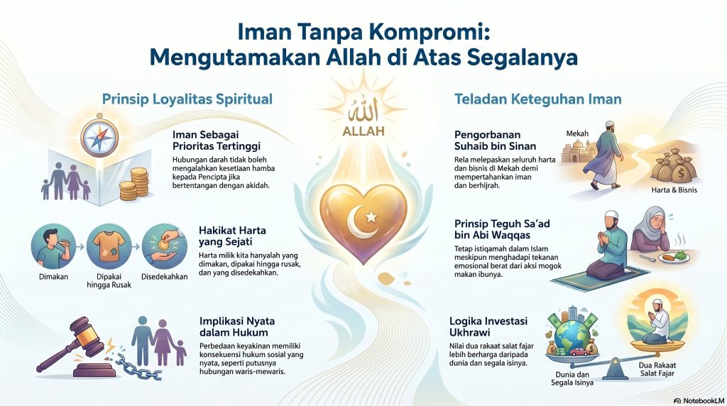 Sebagai kesimpulan, keteguhan iman adalah kunci utama dalam menghadapi segala fitnah dunia. Allah tidak akan memberikan petunjuk kepada orang-orang yang fasik, yaitu mereka yang lebih mencintai dunia, keluarga, dan perdagangan di atas cinta kepada Allah dan Rasul-Nya. Semoga kita senantiasa diberikan keistiqamahan dalam menjaga cahaya iman hingga akhir hayat.